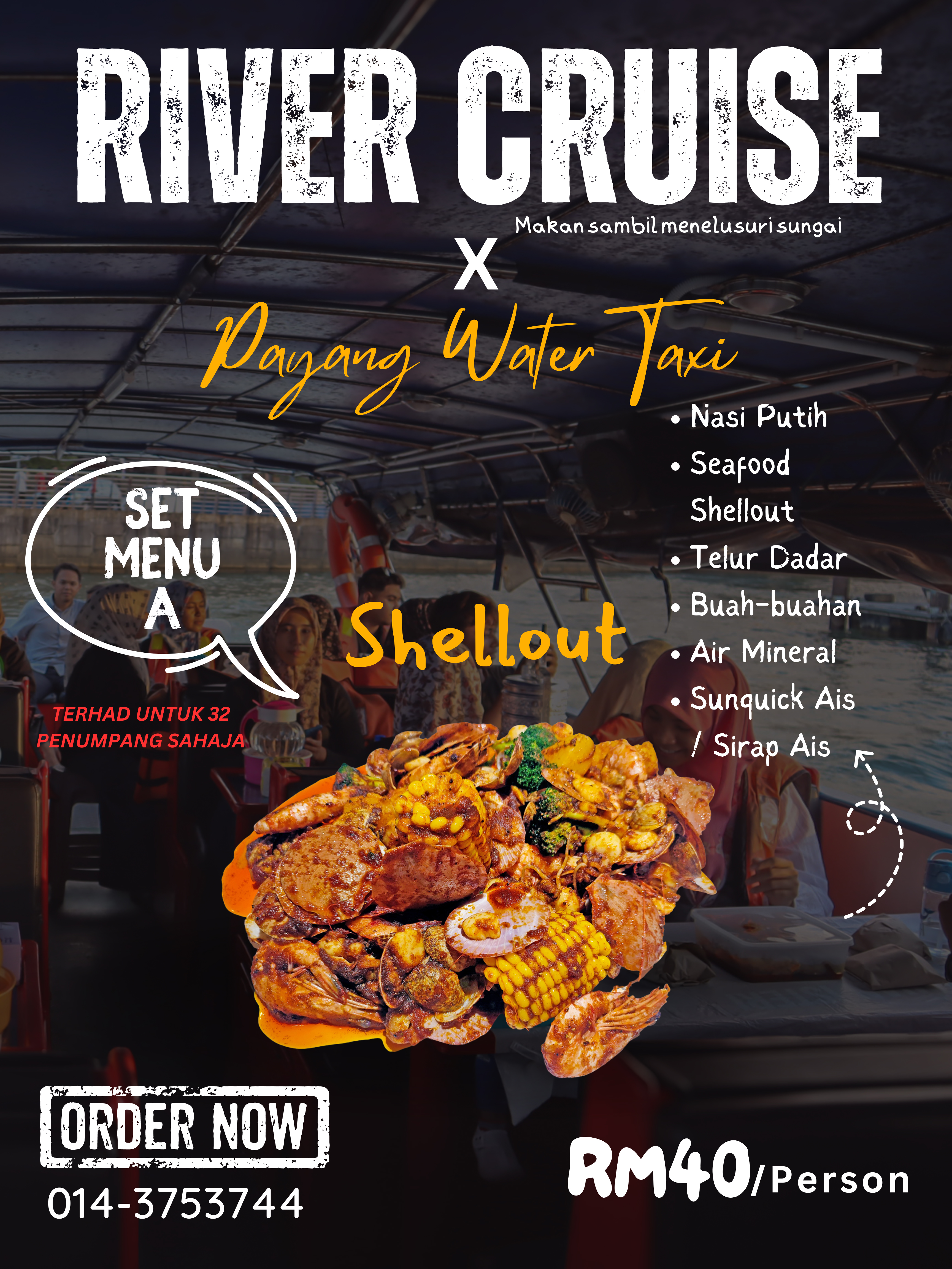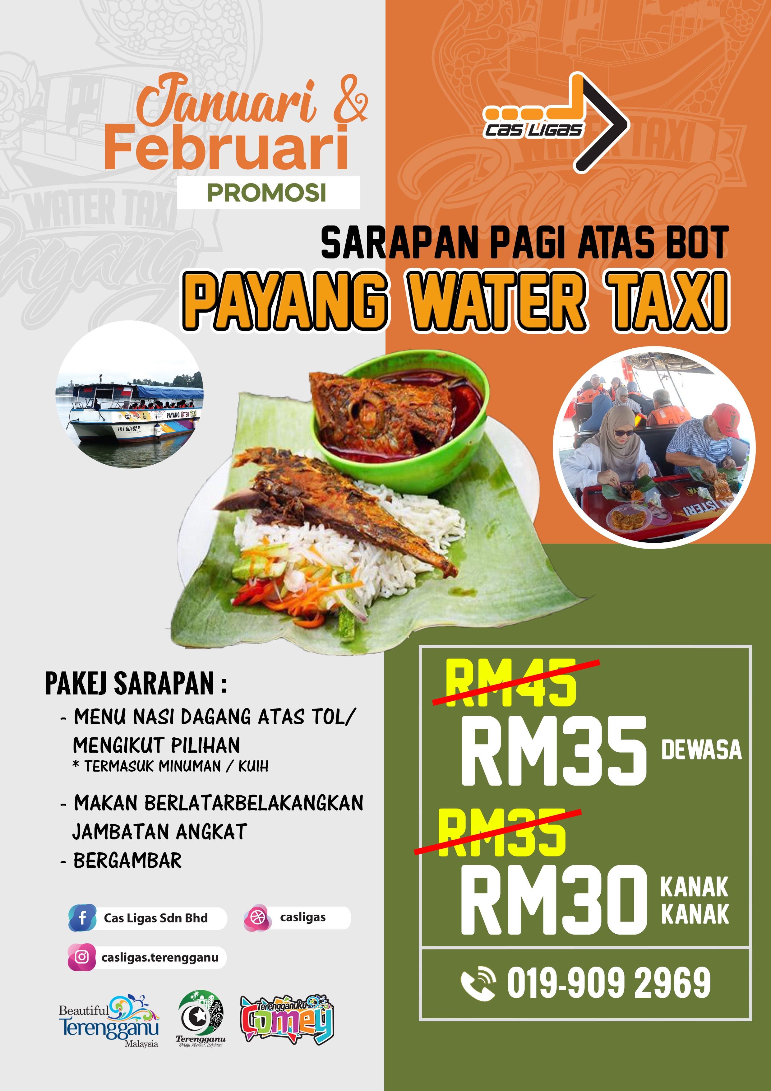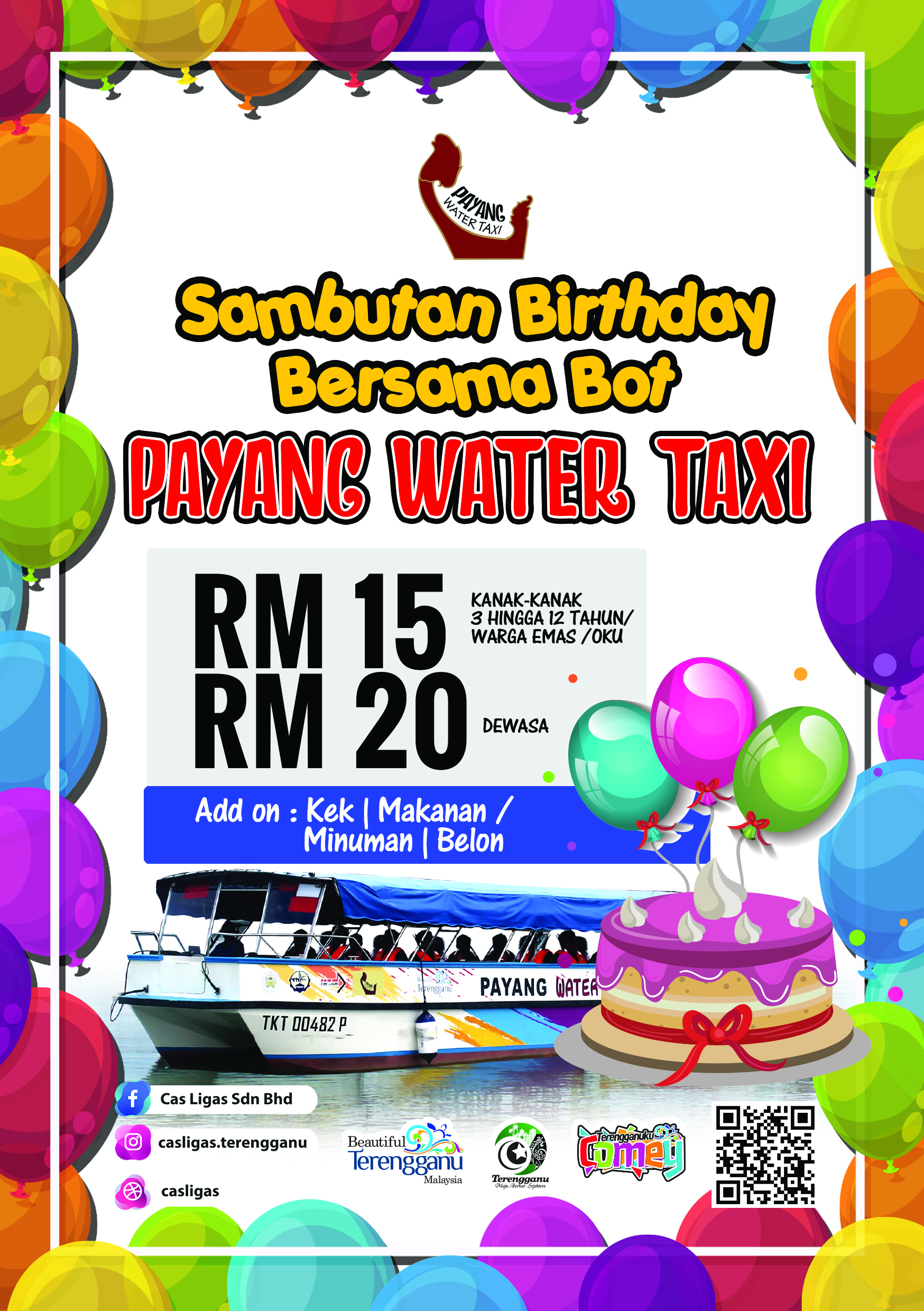 Selain itu,para pengunjung yang datang juga boleh membawa juadah sendiri untuk pakej berbuka puasa bersama bot Payang Water Taxi. Pakej ini dikenakan caj sebanyak Rm15.00/Dewasa dan Rm10.00/Kanak-Kanak. Minima 10 orang diperlukan bagi pakej berbuka puasa bot Payang Water Taxi. Tambahan, pada bulan ramadan ini juga, Payang Water Taxi turut mengadakan promosi diskaun sebanyak 50% bagi perkhidmatan river cruise. Harga asal perkhidmatan ini ialah Rm20.00/Dewasa dan Rm15.00/Kanak-Kanak. Sempena promosi ini harga perkhidmatan kami hanyalah Rm10.00/Dewasa dan Kanak-Kanak.